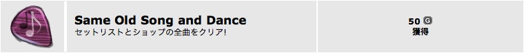 「エアロスミス」のほうは、収録曲全曲クリア。最初、クイックプレイで全曲クリアしたら実績が開かず、不安になりましたがキャリアで全曲クリアしたら開きました。