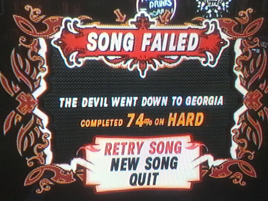 最初に難易度エキスパートの「Impulse」で肩ならし→その他のエキスパートレベル曲を数曲弾いて指を温める→本題のハードレベル「The Devil Went Down to Georgia」に挑戦