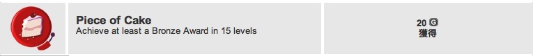 「ハッピートゥリーフレンズ」は「15ステージで評価ブロンズを取れ」の実績ですが、こちらは先週取った実績と違って「ブロンズ以上の評価を取っていればその評価も換算」されているみたいですね。これも、とりあえずクリアしていけば取れる実績だ。