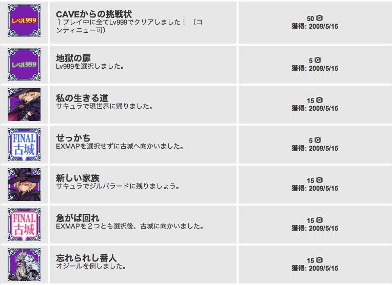 遅れましたが、 5/10〜5/16までに獲得した実績