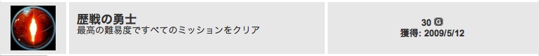 「F.E.A.R.2」は、難易度ハードでのシングルプレイオールクリア。前々から少しずつ進めていたヤツです。これが取れたことで、オフラインで取れる実績は全て獲得。あとはオンライン対戦の実績ですが…ラグが酷いとゲームにならないので実績獲得はかなりキツいですね。日本版が出て、日本人と対戦出来るんならまだ何とか対戦出来る?ことを期待しよう。ユーザー数少なそうだけど。