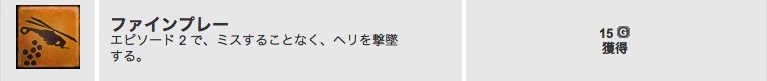 「オレンジボックス」は、「そういえば、あとちょっと遊べば実績が取れる状態でセーブしてあったな…」ということを思い出し、その実績を取るためだけにプレイ。5発ほど爆弾を当てればヘリを撃墜できるのですが、一発でも外すと実績を獲得できないので、「爆弾を一発当てるごとにセーブ。外したらロード」を繰り返して取りました。時々ヘリが思いもよらない方向に動いたりするので結構難しかったです。