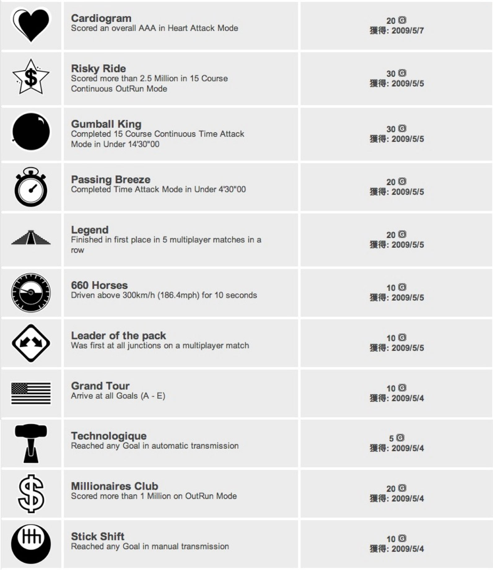 海外ゲイツで買った「アウトラン:オンラインアーケード」は、アーケードから散々遊んでいる山田氏にとっては特に難しい実績は無かったです。対戦で5連勝は本気で勝ちを狙いました。あとは「シングルプレイを50回遊ぶ」実績なので、数こなすだけですね。