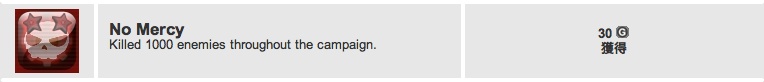 「ソルジャーオブフォーチュン」は「ハードモードクリア」の実績を取ろうとしている最中に獲得したもの。敵を累計1000キル。こちらも「プレイ」と同じくオンライン対戦系実績は談合で取れるものがあるので、今度フレンドさんに交渉してみよう。
